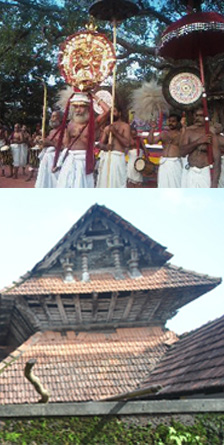 Then 'Madayikavu' Temple came into existence as per the deity's wish. In another ancient story it is believed the people of Madayi were troubled by a demon named 'Dharaka' and Madayikavu Amma in the form of Kali killed him and requested Lord Shiva to give a place on earth where people can worship her always. Lord Shiva ordered his disciple Parashuram and as per his orders Parashuram hit the ground with his sword and the sea which made way for a hill was transformed into a "Punya Kshethara' of mother Kali very popularly known as Madayi Kavu Ammaor Thiruvar Kadu Bhagavathi.